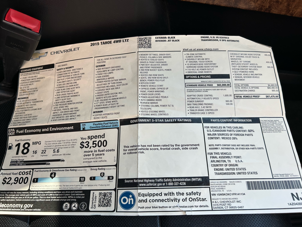Vehicle Inquiry for 2015 Chevrolet Tahoe LTZ 4WD