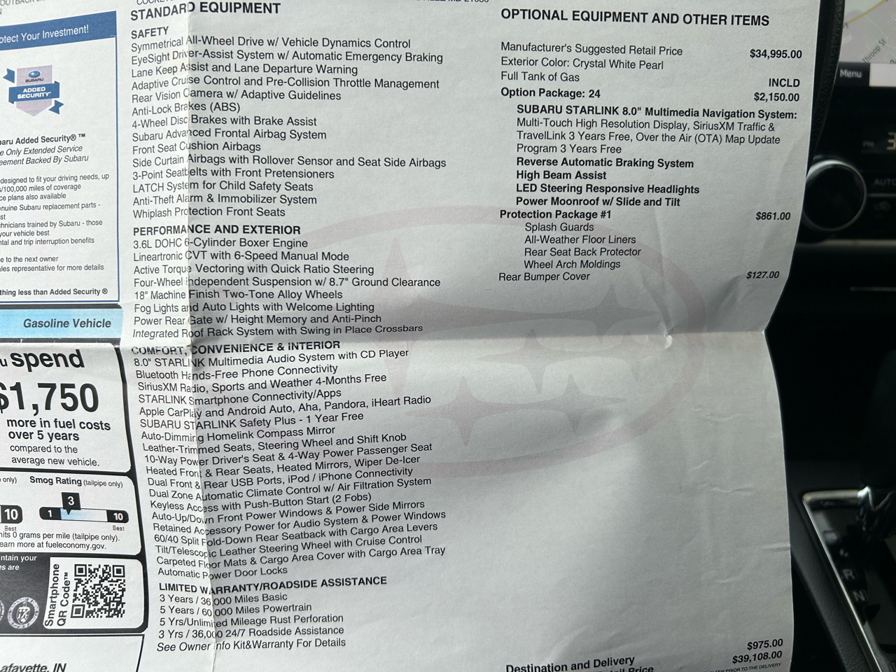 Vehicle Inquiry for 2019 Subaru Outback 3.6R Limited